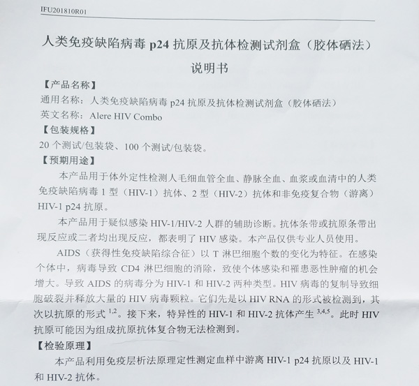 注意:雅培四代艾滋试纸为初筛产品,如果出现阳性(+)结果,应前往疾控中心(CDC)做确证检测,确证检测才是最终结果。